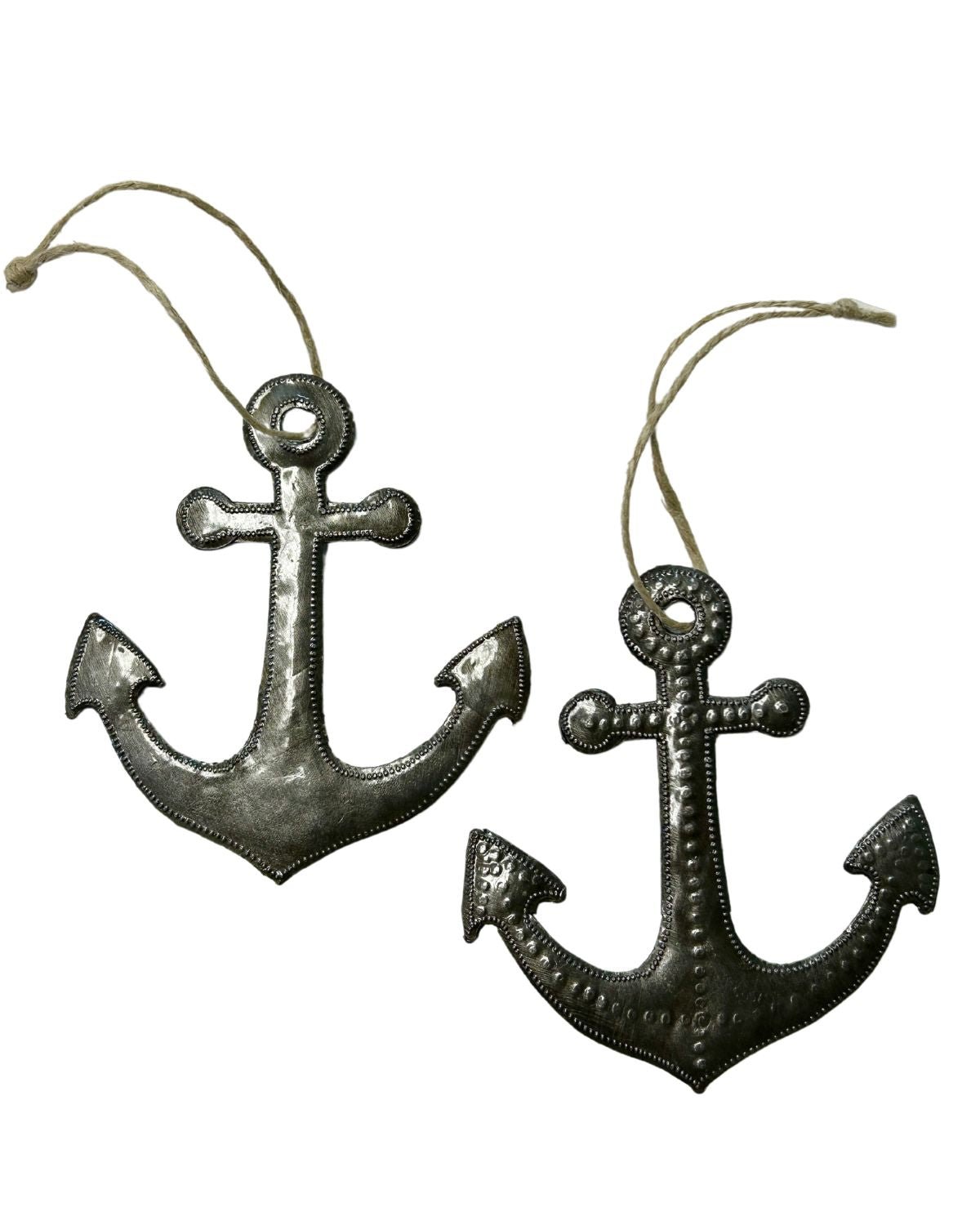 Add the perfect touch of nautical charm to your holiday decor with our handmade Anchor Metal Ornament Set. Made in Haiti from recycled steel drums. these ornaments are both sustainable and stylish. Perfect for a beachy themed tree or as a unique addition to any holiday display.