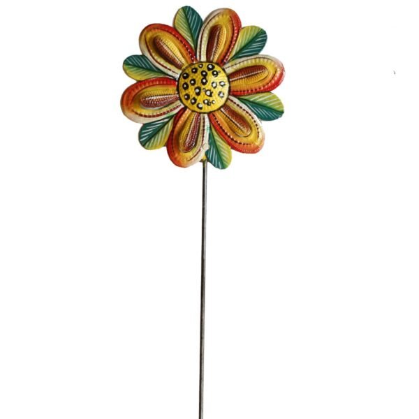 The Painted Flower Garden Stake is the perfect addition to any garden. patio. landscaping. or flower pot.? Made from recycled 55-gallon oil drums in a small village in Haiti all from hand!? The talented metal artisans cut. hammer. and chisel the metal into gorgeous pieces with amazing detail.??